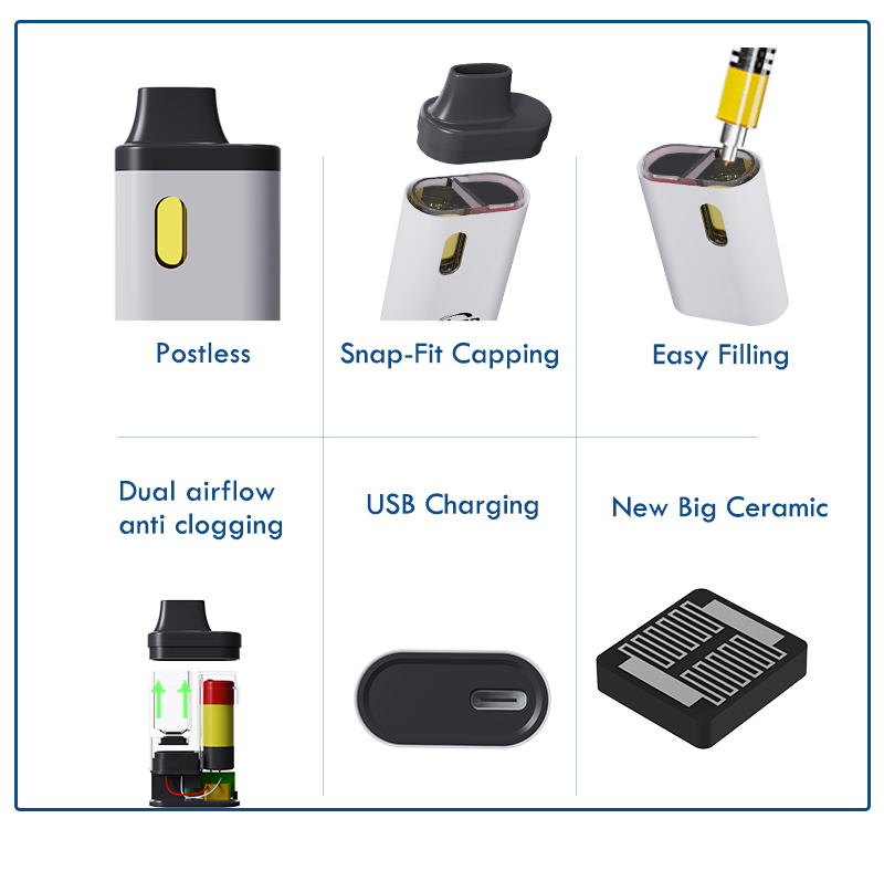 Custom Delta 8 Delta 9 THC Dihubungkan-Rasa Murni, Reka Bentuk Pintar. Terutama dibina untuk kedua-dua minyak ganja yang nipis dan tebal, peranti vape gaya mini ini mempunyai reka bentuk postless dan gegelung seramik filem rata yang besar, menyampaikan kesucian rasa yang tidak dapat ditandingi dan pemeliharaan terpen. Dengan pemanasan suhu rendah, ia menangkap rasa penuh minyak premium seperti resin hidup, THCA, sulingan, rosin dan minyak campuran. Kompak namun berkuasa, peranti ini menyokong tingkap minyak tersuai dan penjenamaan permukaan penuh, menjadikannya sesuai untuk jenama ganja yang berpandangan ke hadapan. Prestasi yang konsisten. Clean Vapor. Identiti berani.